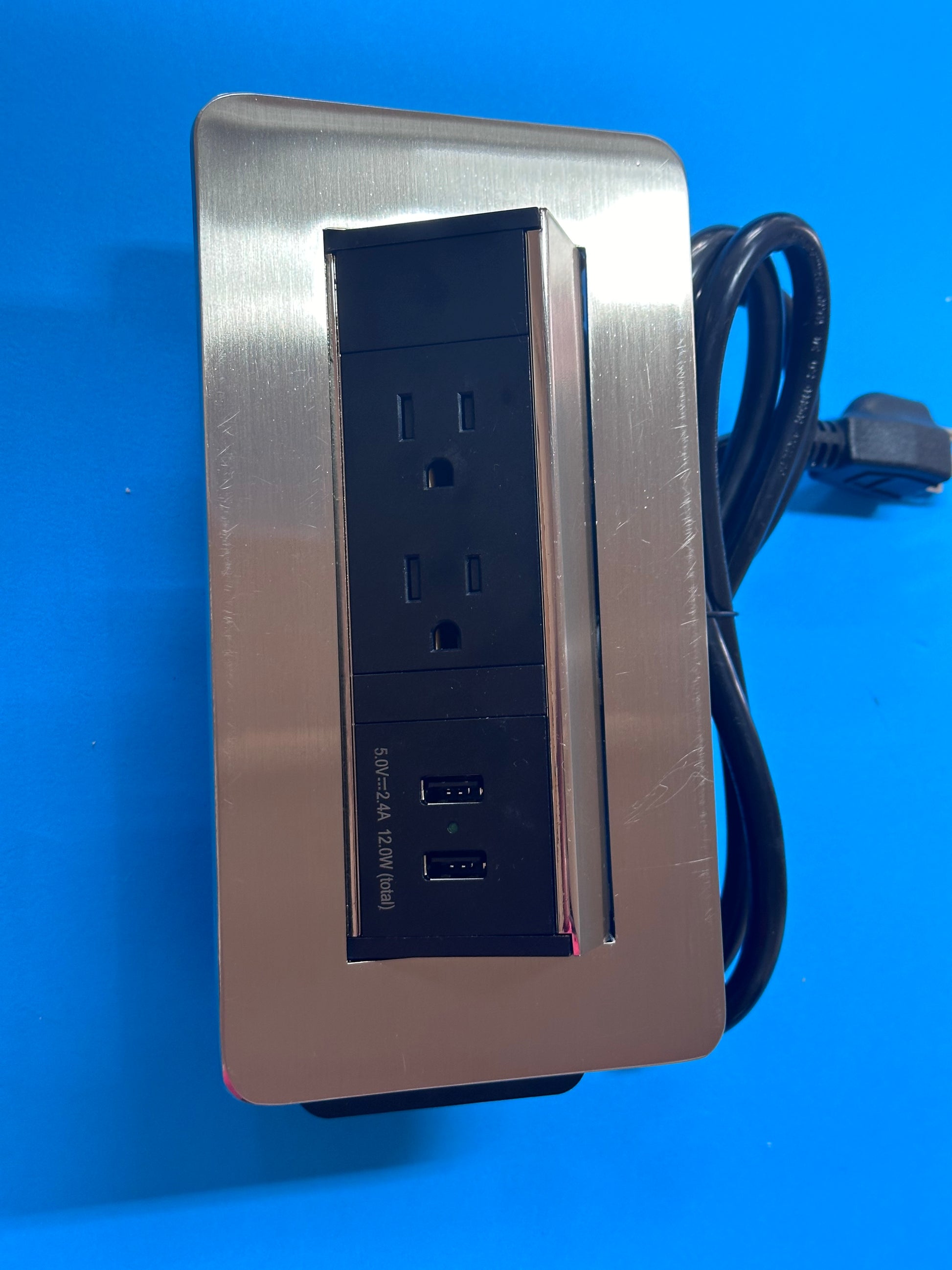 Stainless Square Pop-Up with 2- 110 volt plus and 2- 12 volt USB plugs.